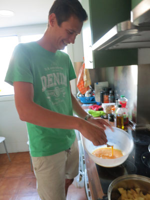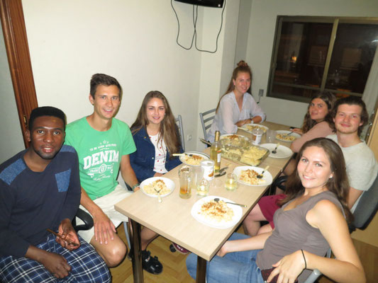 Montags war ich mit ihm im Praktikum und wir haben abends für die ganze WG gemeinsam etwas deutsches und vegetarisches gekocht. Wir standen drei Stunden in der Küche und haben für acht Leute Käsespätzle und Apfelstrudel gekocht. Es hat sehr Spaß gemacht und alle Mitbewohner aller Nationen (Mexiko, Island, England und Frankreich) wollten das Rezept haben – Problem dabei: Wir haben frei Schnauze gekocht ^^ Es hat so Spaß gemacht gemeinsam zu kochen, gemeinsam zu essen und sich auszutauschen, international, auf Englisch und Spanisch.